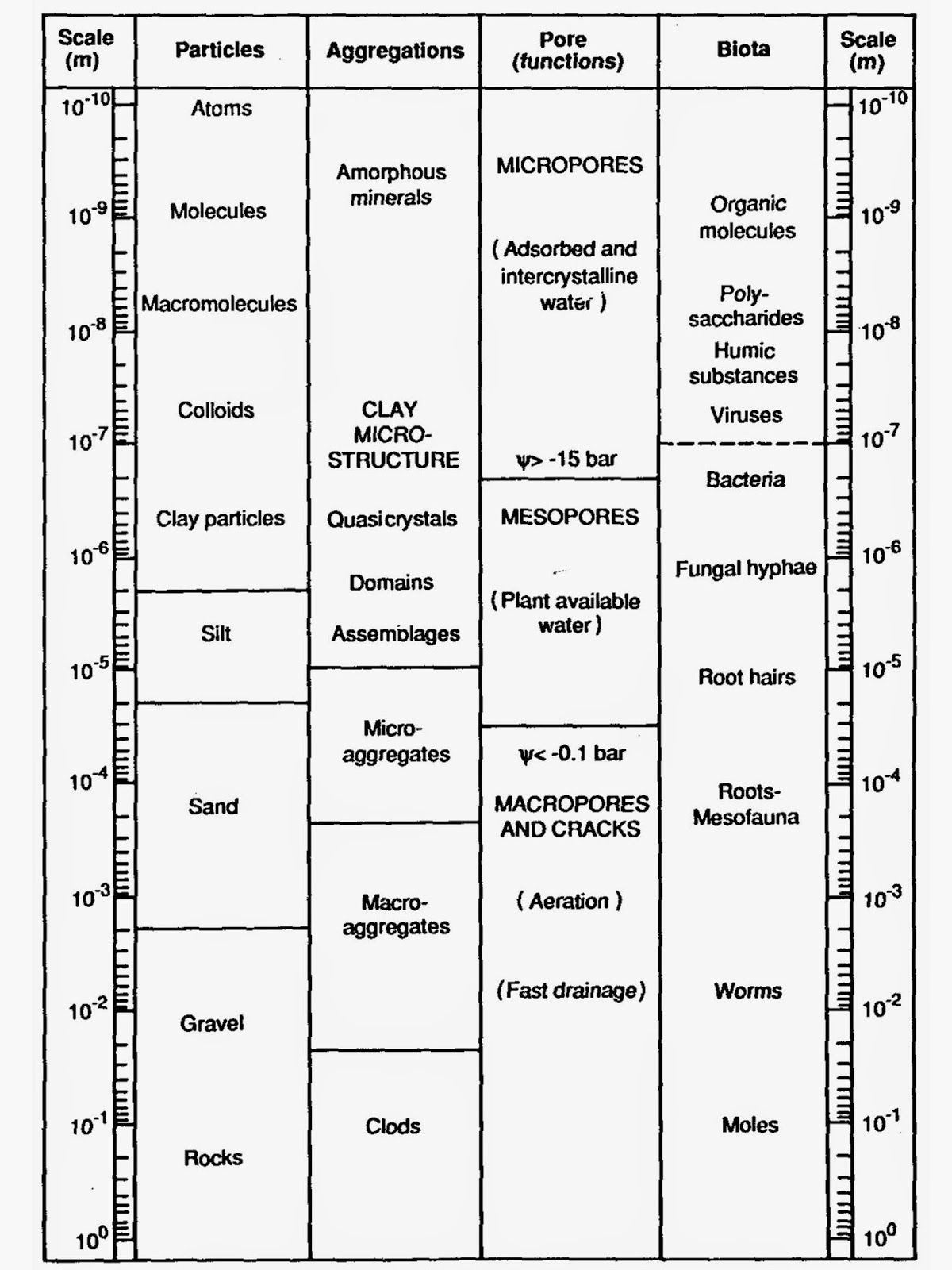 | Variation in size of different types of soil. From Kay (1990) |