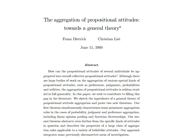 | Diestrich and List (2010): Oxford Studies in Epistemology 3: 215-234, 2010 |