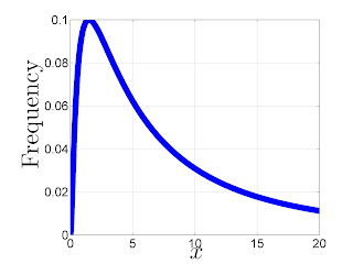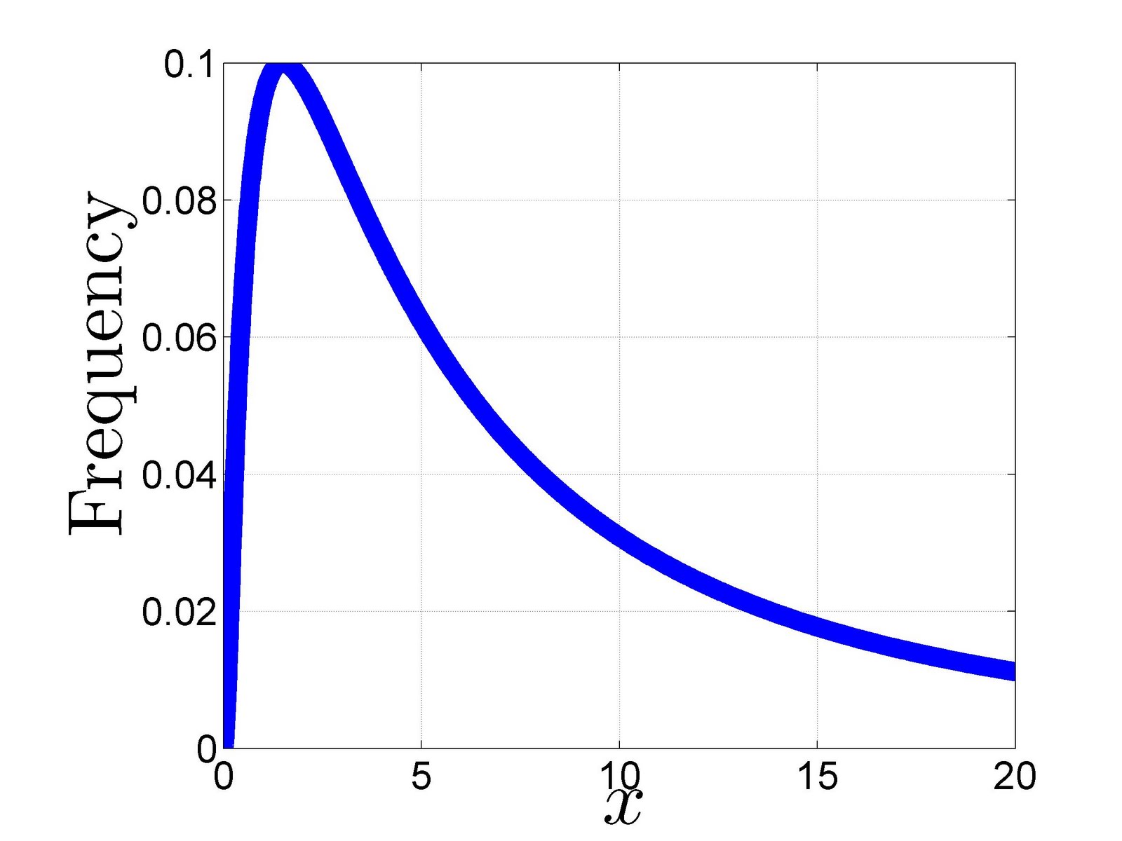 Which is a nice lognormal distribution with mode at x = 1.5 and frequency 10%.