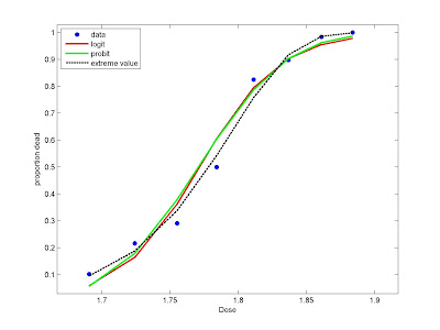 col1 = Dose (xi), col2 = #of bettles (ni), col3 = #beetles killed (yi). So
