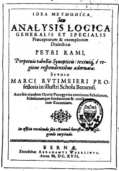 Source: Marcus Rutimeier (1617) Idea Methodica seu Analysis Logica Generalis et Specialis Praeceptorum et Exemplorum Dialecticae Petri Rami. Bern: Here